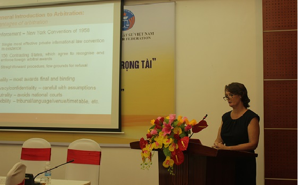 Tại buổi tọa đàm, bà Bernadette Fahy đã chỉ ra những ưu điểm trong việc giải quyết tranh chấp thương mại bằng hình thức trọng tài: Hiện nay có 156 quốc gia tham gia ký kết, thừa nhận và thi hành phán quyết của trọng tài theo Quy ước New York 1958; phần lớn các phán quyết là không thể thay đổi, mang tính ràng buộc; tính bí mật, bảo mật hoàn toàn được đảm bảo cho các bên tham gia... Bên cạnh đó, hình thức giải quyết tranh chấp bằng Trọng tài còn bộc lộ những hạn chế như: Tòa án sẽ không được diễn ra nếu một trong hai bên vắng mặt; tòa án không có quyền đối với bên thứ ba; có xu hướng cho sự can thiệp của tòa án ở một số cấp xét xử...