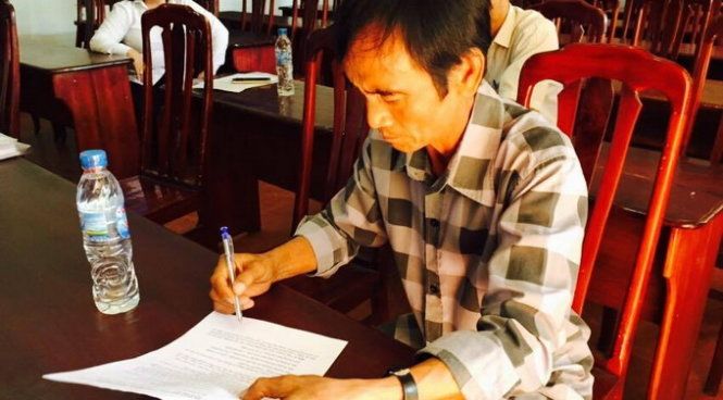 Sáng 24-4, ông Huỳnh Văn Nén - người bị kết án oan trong 2 vụ án ở Bình Thuận và ông Nguyễn Thận (người đi kêu oan, đại diện theo ủy quyền của ông Nén) đã đến TP Phan Thiết làm việc với TAND tỉnh Bình Thuận về số tiền bồi thường oan sai mà gia đình ông Nén được nhận.