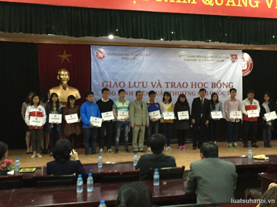 Ban chấp hành Đoàn thanh niên đã trao 15 suất học bổng cho các bạn sinh viên có thành tích học tập xuất sắc nhằm động viên các bạn sinh viên tiếp tục cố gắng phát huy hơn nữa tinh thần học tập của mình. Buổi giao lưu và trao học bổng của Đoàn thanh niên đã thắt chặt thêm mối quan hệ hợp tác giữa Đoàn luật sư thành phố Hà Nội và khoa Luật trường Đại học Ngoại Thương. Kết thúc buổi giao lưu Đoàn luật sư Hà Nội và các giảng viên, sinh viên khoa Luật trường Đại học Ngoại thương chụp ảnh lưu niệm.