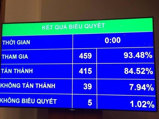 Riêng việc sửa đổi, bổ sung điều 19 (không tố giác tội phạm) được 415/459 ĐBQH tán thành (84,52%). Có 39 ĐBQH không tán thành và 5 ĐBQH không biểu quyết.
